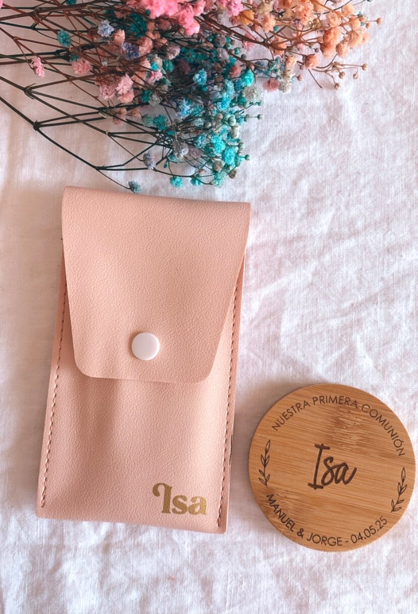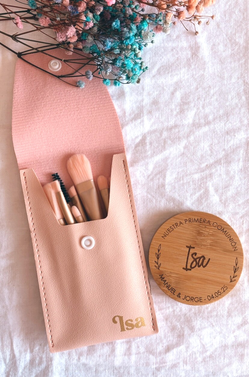 Pack especial con brochas de maquillaje y espejo personalizado.