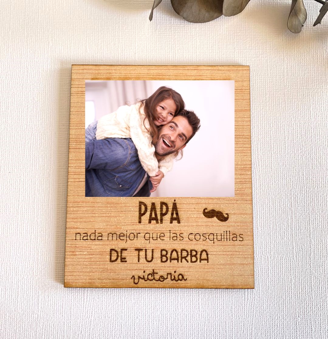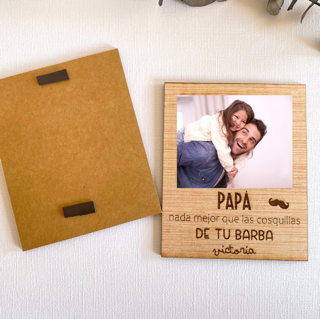 Porta fotos de madera personalizado con imán para el Día del Padre.