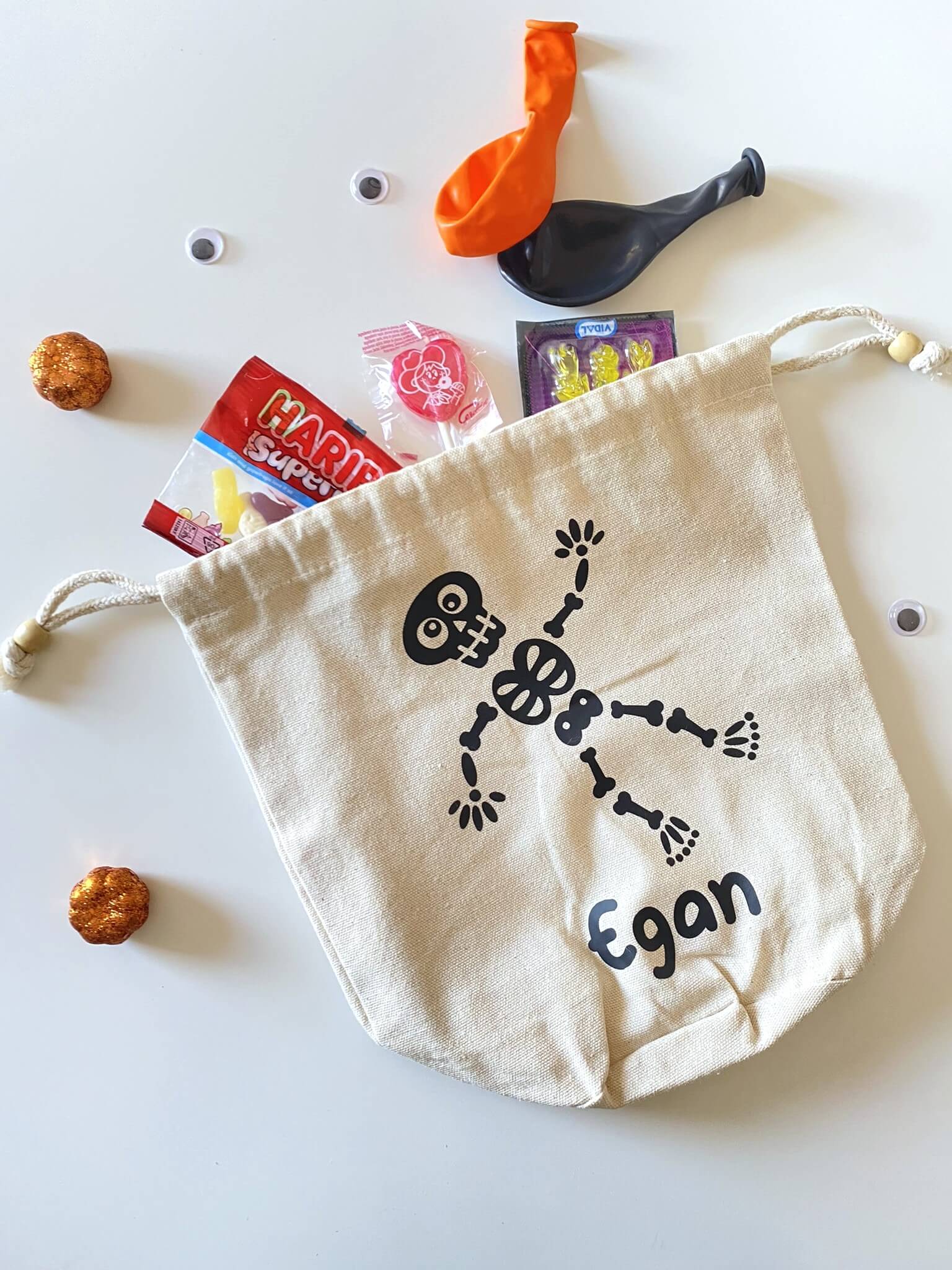 La bolsa para recoger chuches es algo imprescindible para la noche de Halloween, va personalizada con nombre de tu peque y puedes elegir entre 6 modelos.