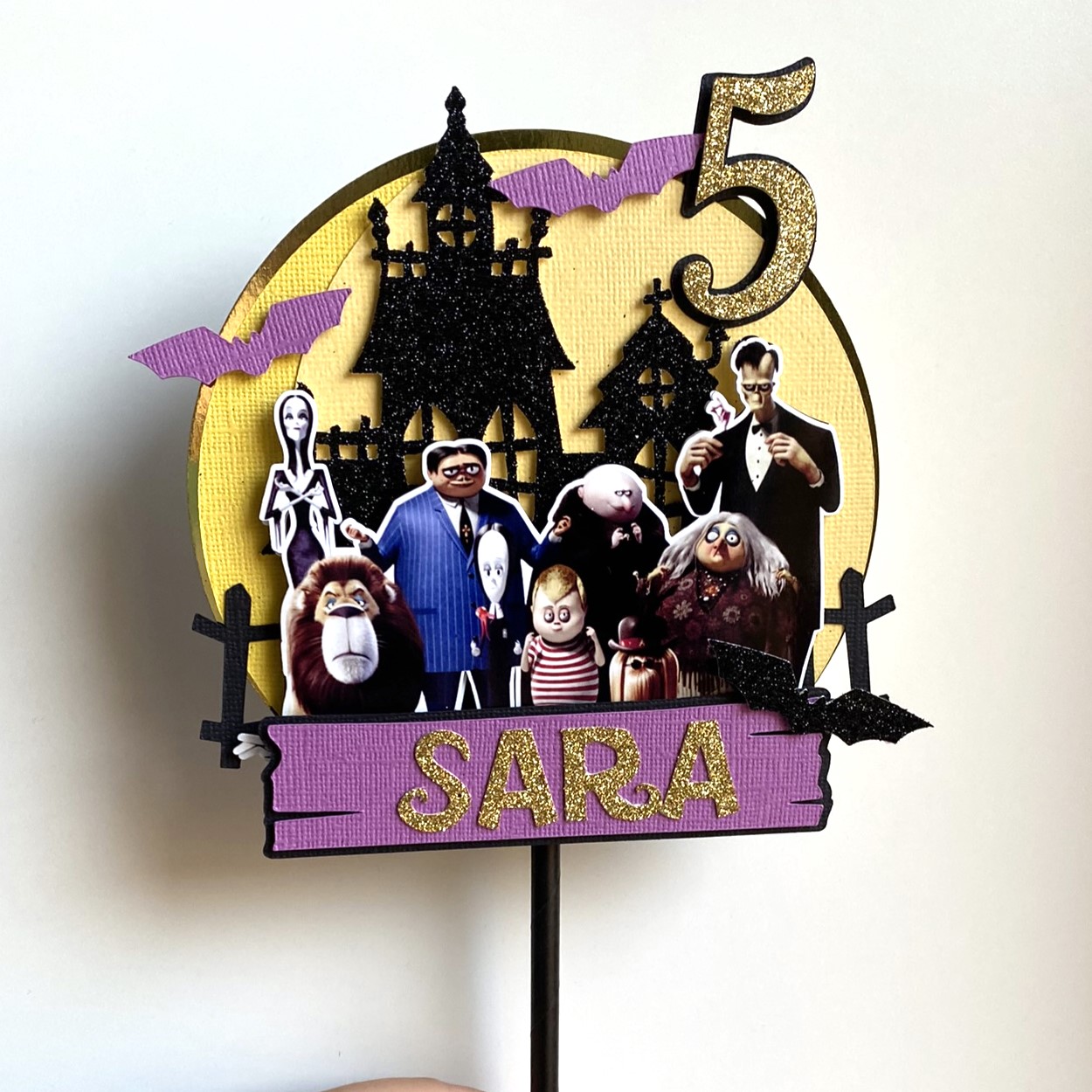 Dale un toque espeluznante y único a tu celebración de Halloween con este topper inspirado en la película de Transilvania o en la Familia Adams, ideal para los más pequeños.