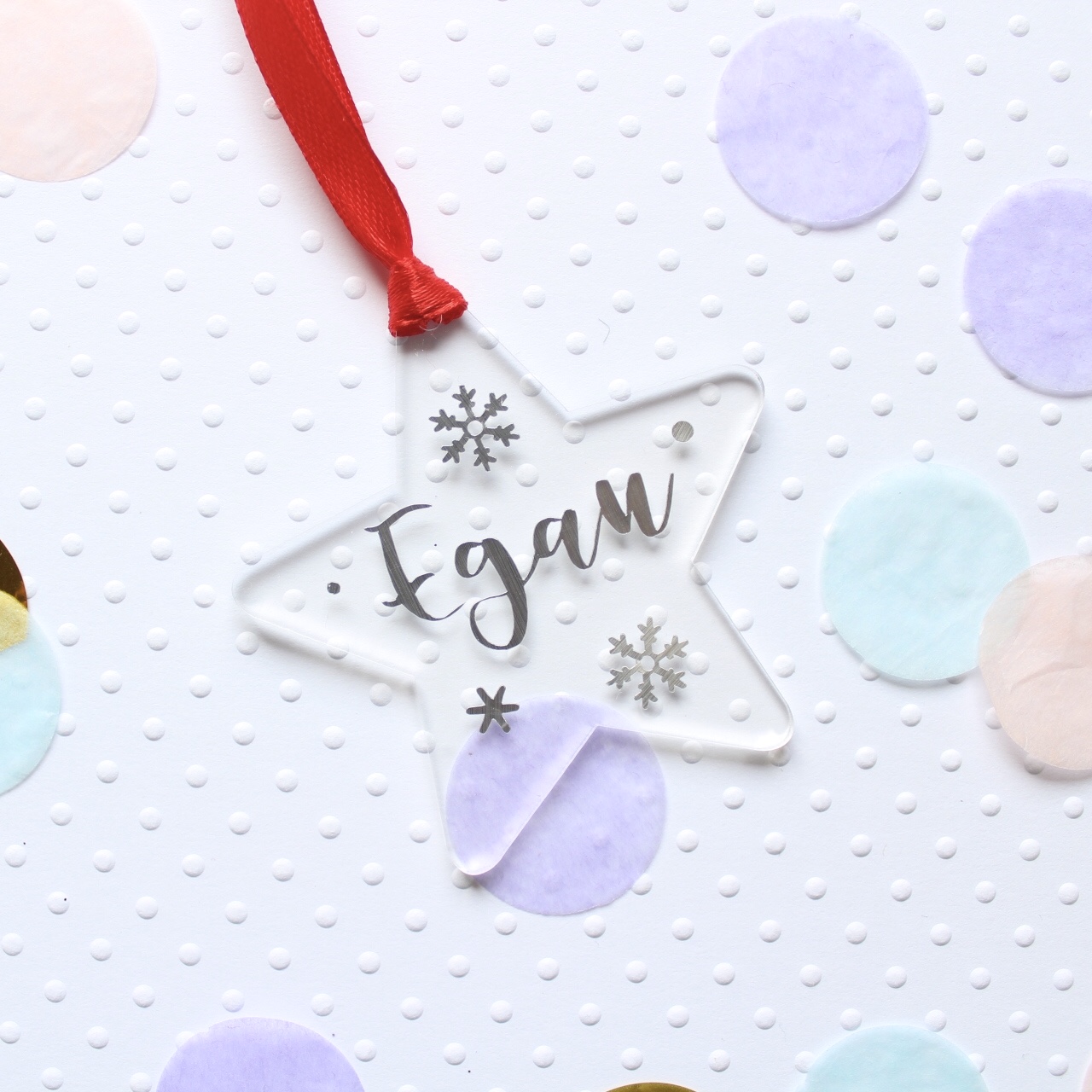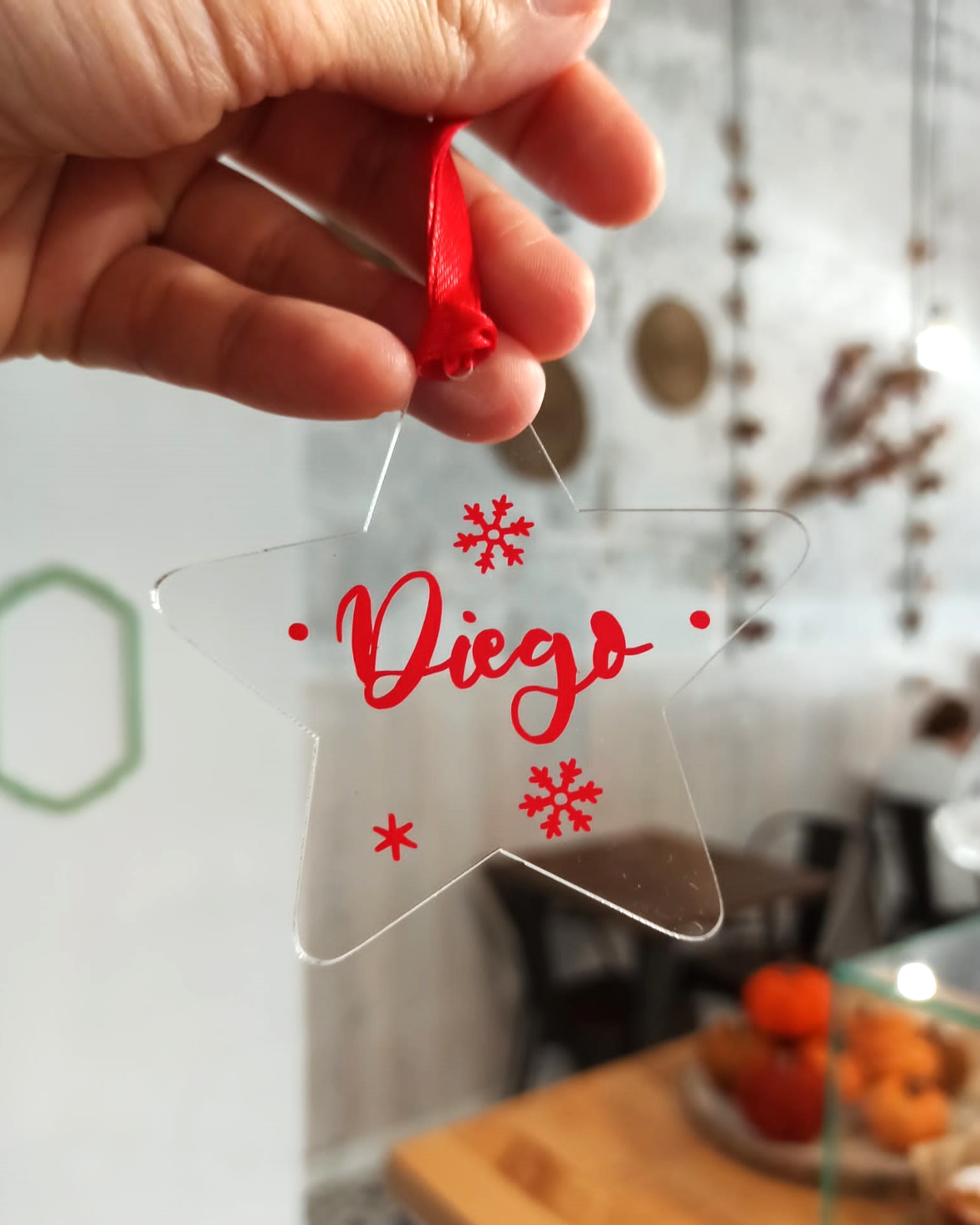 Decora tu árbol o sorprende a los demás regalando este adorno personalizado de metacrilato en forma de estrella.