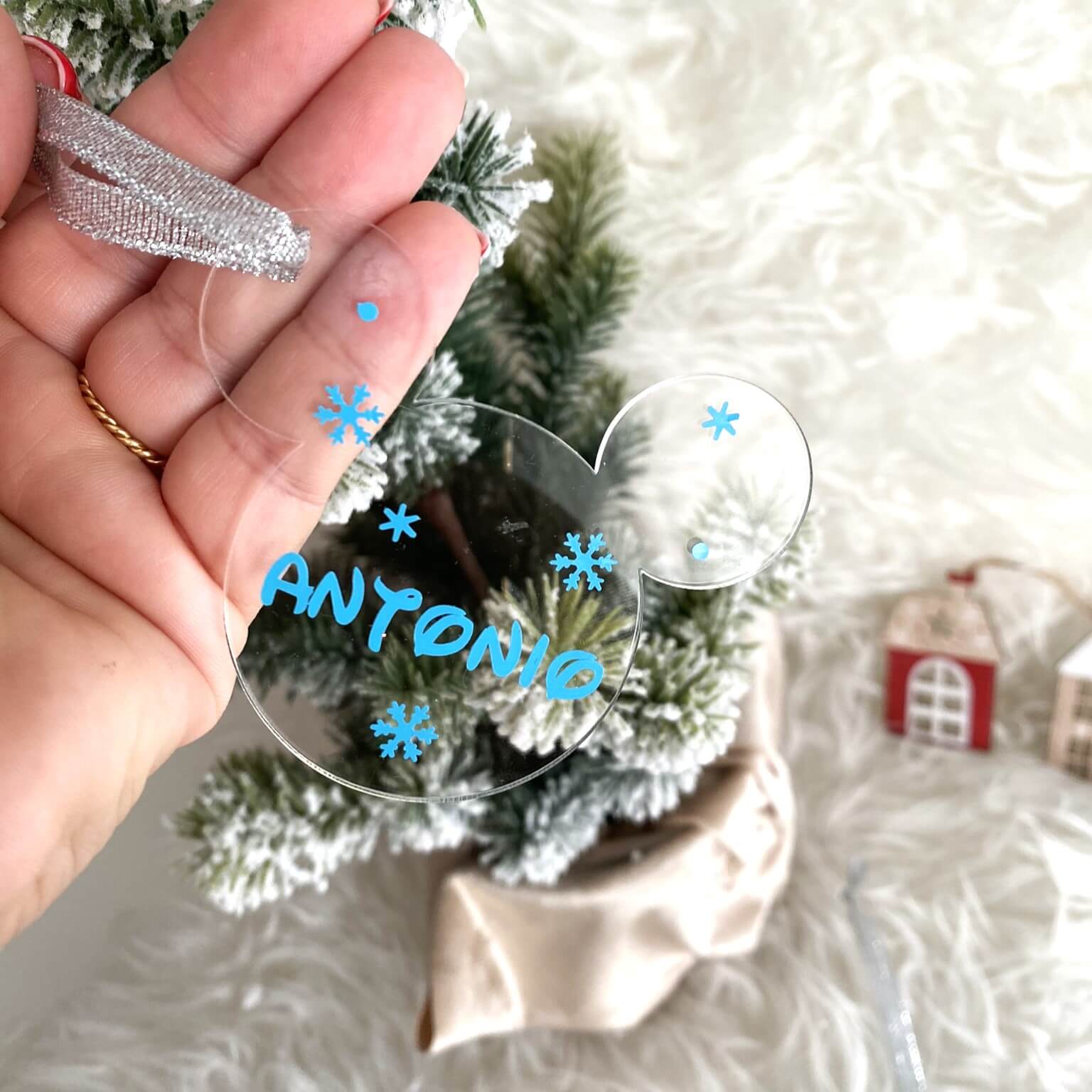 Decora tu árbol o sorprende a los demás regalando este adorno personalizado en forma de la cabeza de Mickey para llenar el árbol de magia.