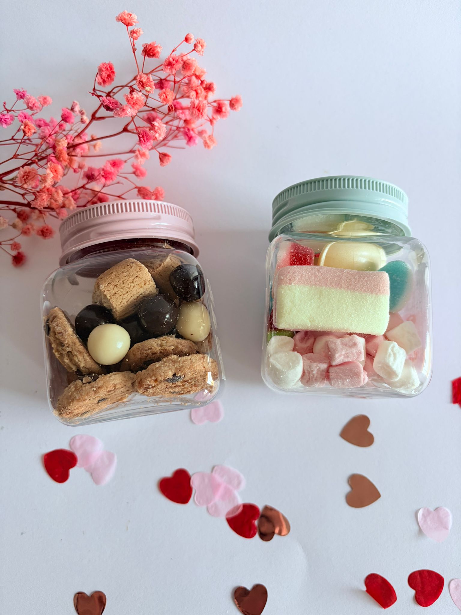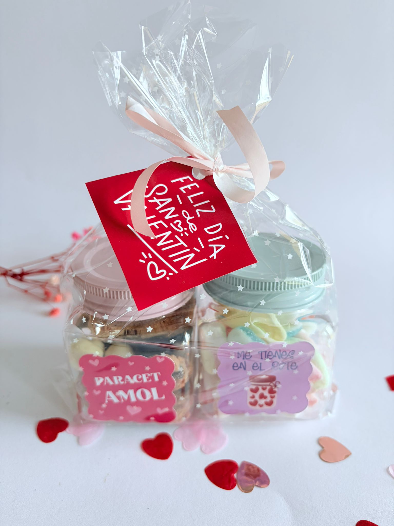 Sorprende este San Valentín con un detalle dulce, original y personalizado: nuestros botes de chuches con mensaje San Valentín. Cada bote está lleno de chuches y galletas con chocolate deliciosos y viene con un mensaje romántico o divertido que hará sonreír a esa persona especial. La combinación perfecta entre sabor y emoción.