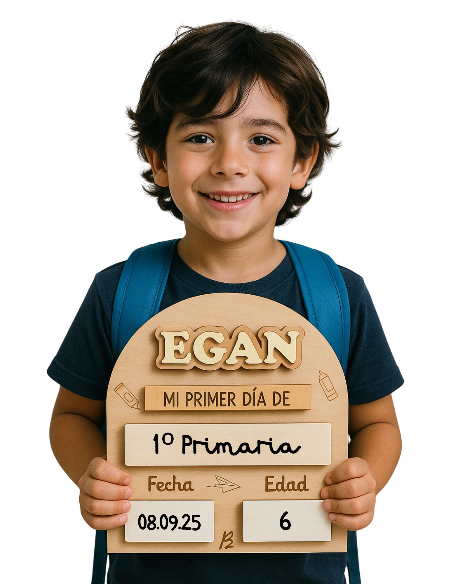 Haz que el primer y último día de colegio de tu peque sea aún más especial con nuestra pizarra de madera personalizada.